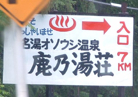 そこから約7Km程林道を進むとまた看板があるのでそこを右折すると着く。