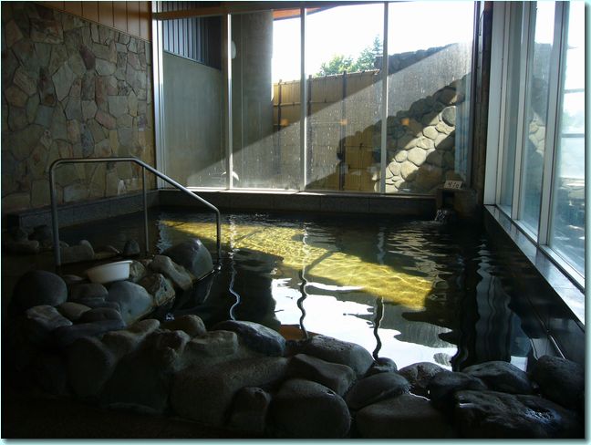 大浴場「平山」の内湯。洗い場は写っていないが手前側にある。