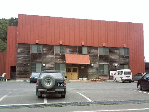 外観。新しい施設はこの裏側で建設中。右側に少し離れたところに源泉を溜めるらしいタンクがある。