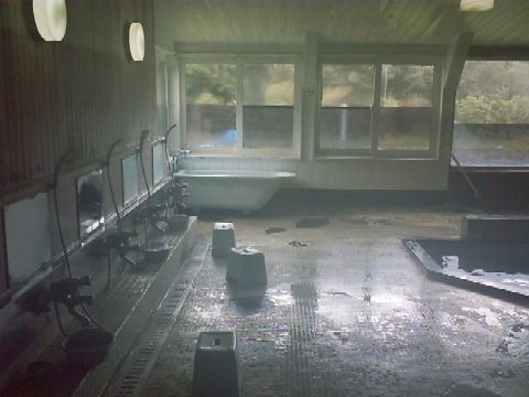 ここに至る道路もこの温泉のために作られたような道路で、国道との交差点からこの温泉までは舗装されているが、その先は車が通れるかどうかも怪しい状態(車の通った痕はあるが)。