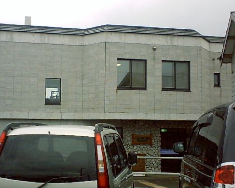 駐車場から撮影したのであまりうまく撮れなかった。2つ並んでいる窓の下が入り口。