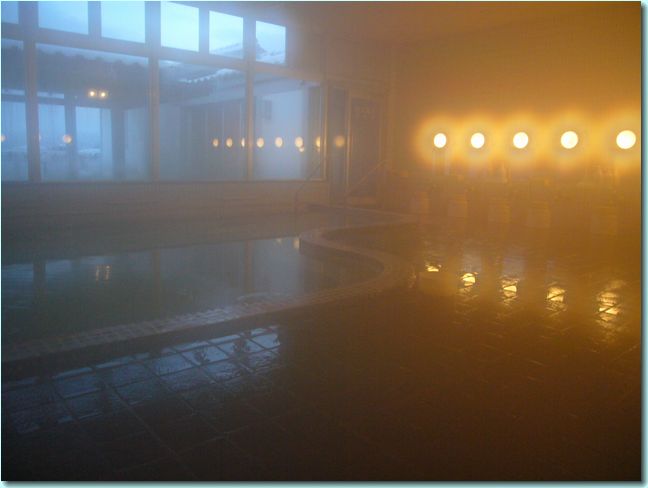 男性用内湯。浴室内は床暖房が入っているので、暖かく湿度が高いのでレンズが曇ってしまった。